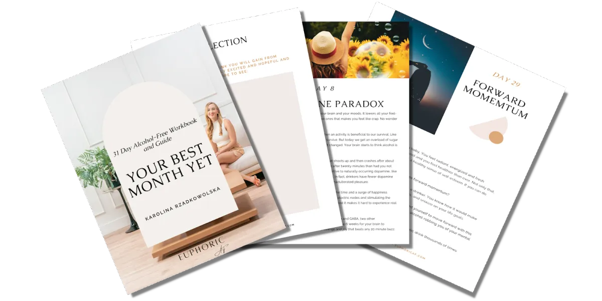 “Euphoric will change your WHOLE life for the better. I've tried giving up alcohol before, but always felt deprived and resentful. Karolina's guided 8 week plan to go alcohol free has been the missing piece that I needed. I feel happier, calmer, more peaceful, sharper, and more connected than ever before. The mindset shifts, research and journaling prompts have helped me to clearly see I'm done letting a beverage get in the way of what I really want. This is not just a book it's literally a road map to change your whole life. For anyone questioning their relationship with alcohol, this book is an absolute gift.”