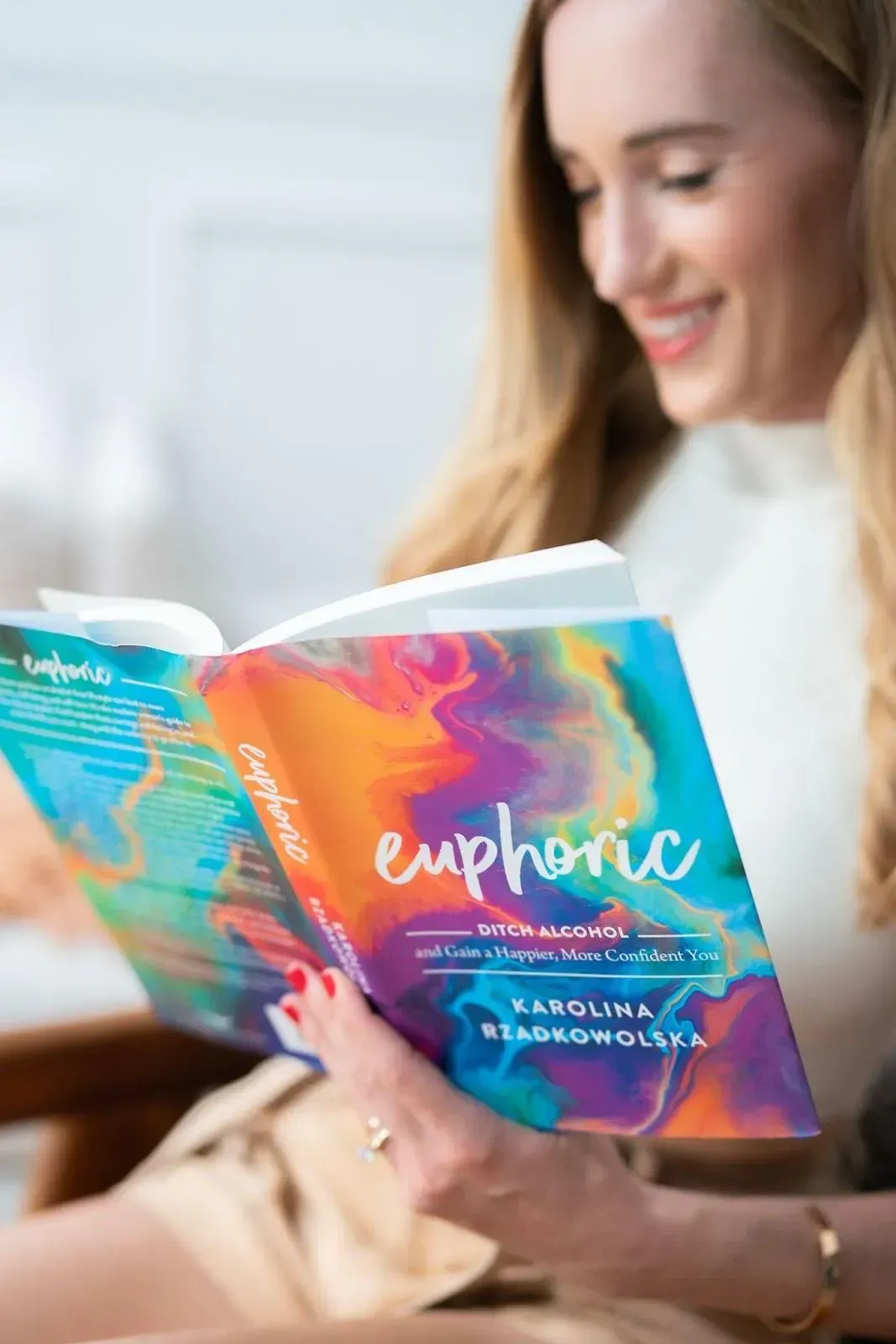 In her book, Euphoric: Ditch Alcohol and Gain a Happier, More Confident You, she combines her personal path to alcohol-free-living with firsthand accounts from her clients, research, and statistics about the benefits of living without alcohol, and a week-by-week guide for doing s